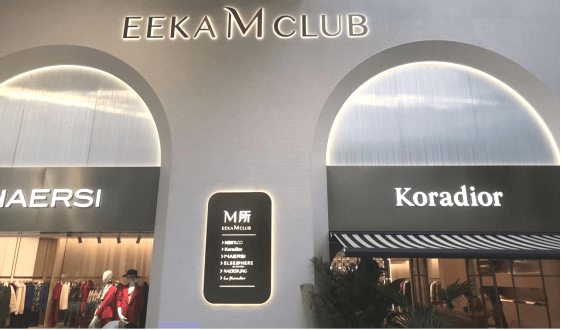 EEKA M CLUB品牌服装店,中文名“麦寻女装”,属于中端档次,是国内自主品牌,产品上做到极致的性价比;拥有1500余家销售终端,其中99%是特许加盟的,只有很少一部分是公司自营;这样做的目的是更好地为客户服务,而不是把重心放到直营店;没有将生产线转移到生产成本相对低的地区,旗下产品统一由总公司生产基地所设计生产;以快速多变、少量多款激发客户的购买欲,货品在这个季推出之后,不会再有第二次出现同样的款式。由这个介绍可见,这是家定位较高的服装店。