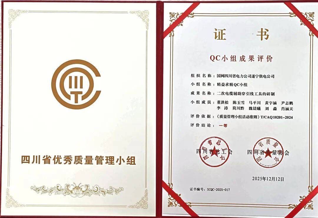 创新是引领发展的第一动力。变电二次班成立“精益求精创新小组”,鼓励员工“把问题变课题、把想法变做法”,围绕工作中的“堵点”“痛点”开展技术攻关。针对二次电缆穿管难题,班组研制出二次电缆辅助穿引线%以上,该成果荣获四川省优秀质量管理小组一等成果奖。班组还坚持“以赛促学、以赛促练”,选派骨干力量积极参加各类竞赛。近五年,班组已斩获2025年全国电力行业职业技能竞赛团体三等奖、四川省优秀质量管理小组一等成果奖、四川省继电保护竞赛团体三等奖等7项国网四川电力级及以上荣誉,涌现出“电力雏鹰”3名、“青年推举人才”1人,团队创新活力持续迸发。